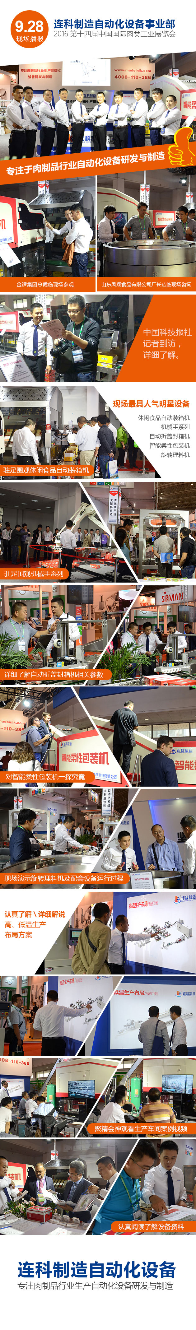 2016第十四届中国国际肉类工业展览会于2016年9月27日-9月29日,于北京·中国国际展览中心(三元桥)正式拉开序幕。连科制造自动化设备受国内外客户的关注,且中国科技报社记者对连科制造进行了详细了解。