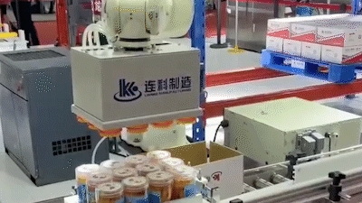连科坐标码垛机适用于纸箱类产品的自动化码垛,适用于多个行业,用途广泛,具备满垛自动提示功能,可与连科AGV自动叉车通讯,实现自动入库,构成后道包装码垛与出入库环节的无人化应用方案。 本机可存储高达100种垛形数据,可快速切换不同垛形。 本机采用符合工程力学的结构设计、特殊材料选用、特殊处理工艺、采用大型数控机床加工,保证了设备整体的性能和长久寿命。 投资仅为机器人码垛系统的1/3,是一款高性价比的自动化设备。