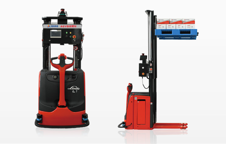 AGV自动叉车,采用激光雷达导航定位,重复定位精度±1CM,适用于生产车间、仓储物流行业托盘类货物的自动搬运,最高叉取高度2.9米,可用于高位货架作业。