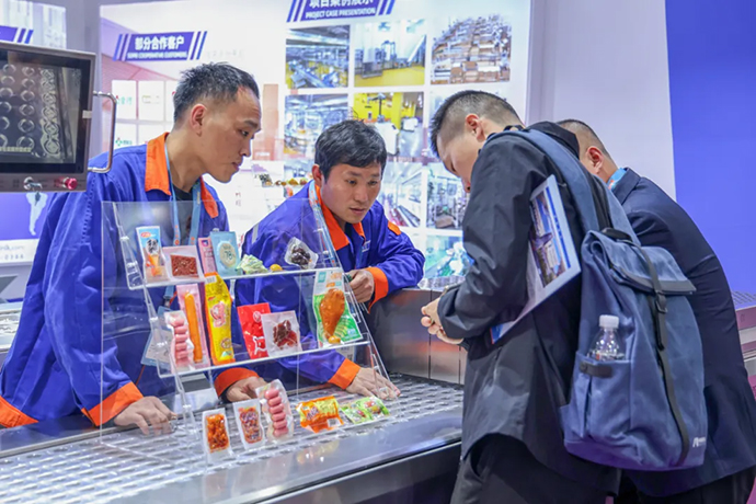 移动式给料泵车,管道式全自动供料系统(实现CIP自动清洗)、火腿肠全自动灌肠机 (结扎机)、杀菌锅自动装卸及货物周转系统、智能杀菌控制系统、拉伸膜真空包装机、节能巴氏杀菌线/水煮线、节能型烘干机、各类自动装箱机、机器人装箱系统、机器人挑拣系统、机器人投料设备、桁架式码垛机、工业机器人码垛系统、协作式机器人码垛系统、开箱机、自动折盖封箱机、检重秤、液体料定量称重机、粉料定量称重机、各类输送线(皮带、滚筒、链板带、不锈钢带、同步带、卫生级、直线、爬坡、转弯、换向等形式)、喷码质量检测设备、视觉检测与挑拣设备、AGV自动叉车、生产过程管理与分析软件系统等。