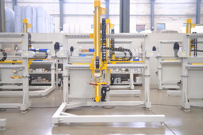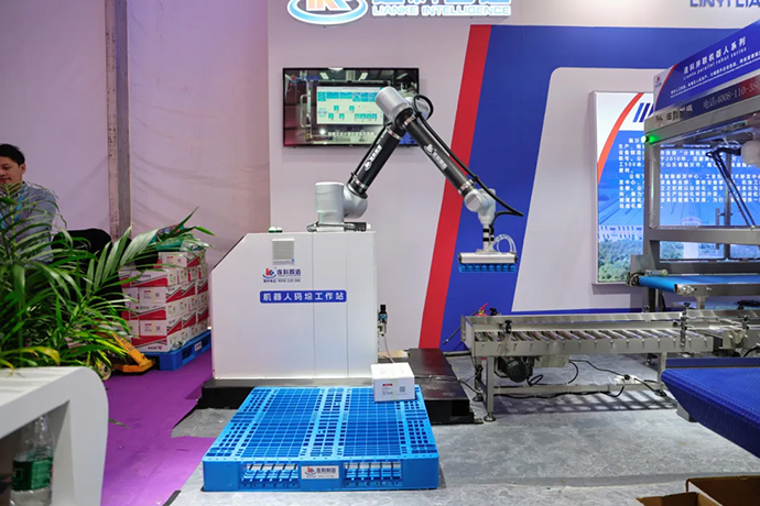 根据用户产品形式,选用不同的码垛机型及抓取方式,实现最经济化、最合理化的码垛方式,并且码垛机可与信息化系统交换信息,自动呼叫AGV自动提供托盘和转运满垛,自动统计码垛品项和数量。