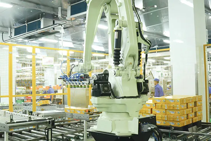 3、调味品行业:产品机器人装箱(含自动开箱、自动封箱、检重秤)-码垛自动化解决方案;