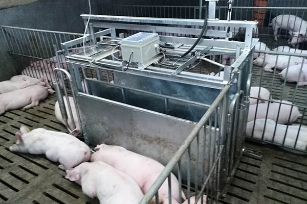 原精准饲喂设备,获取猪体重数据需要用转猪车拉着猪群去称重,十分不便,影响猪群采食。添加过道称后,猪群要进入采食区需途径过道称,猪的体重数据会实时获取并保存,优点是通过设备自动化,实现猪群日增长和肉料比数据的获取。