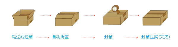 胶带,根据不同用户需求有单贴上盖胶带和上下同时贴带两种规格,整个折盖封箱过程自动完成,省时