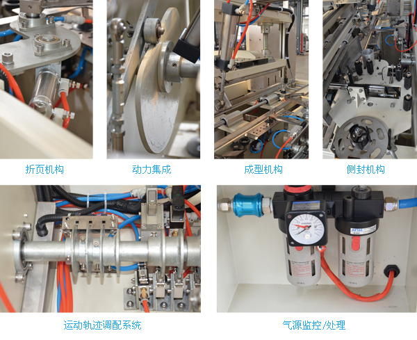●自动化程度高,本机选用PLC编程控制,电气及气动控制部分均为施耐德、欧姆龙、SMC、亚德客等进口品牌产品,成型及封箱采用变频控制可方便的从触摸屏中调整速度,具有性能稳定,操作简单,故障率低等优点。